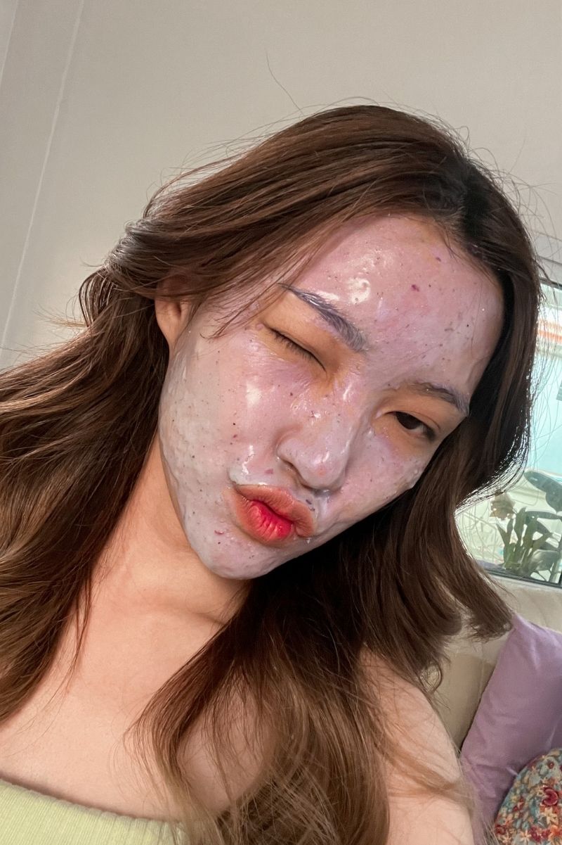 2. ทาทั่วใบหน้า รอ 10-15 นาที มาส์กจะฟอร์มตัวเป็นแผ่นเจลลี่